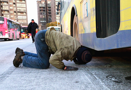 1月22日,我市出現(xiàn)大面積降雪,寒潮來(lái)襲,市區(qū)路面結(jié)冰嚴(yán)重,給城市公交營(yíng)運(yùn)工作帶來(lái)嚴(yán)峻考驗(yàn)。公交公司積極部署防寒抗雪保暢工作,采取有力措施保障市民雪天出行。