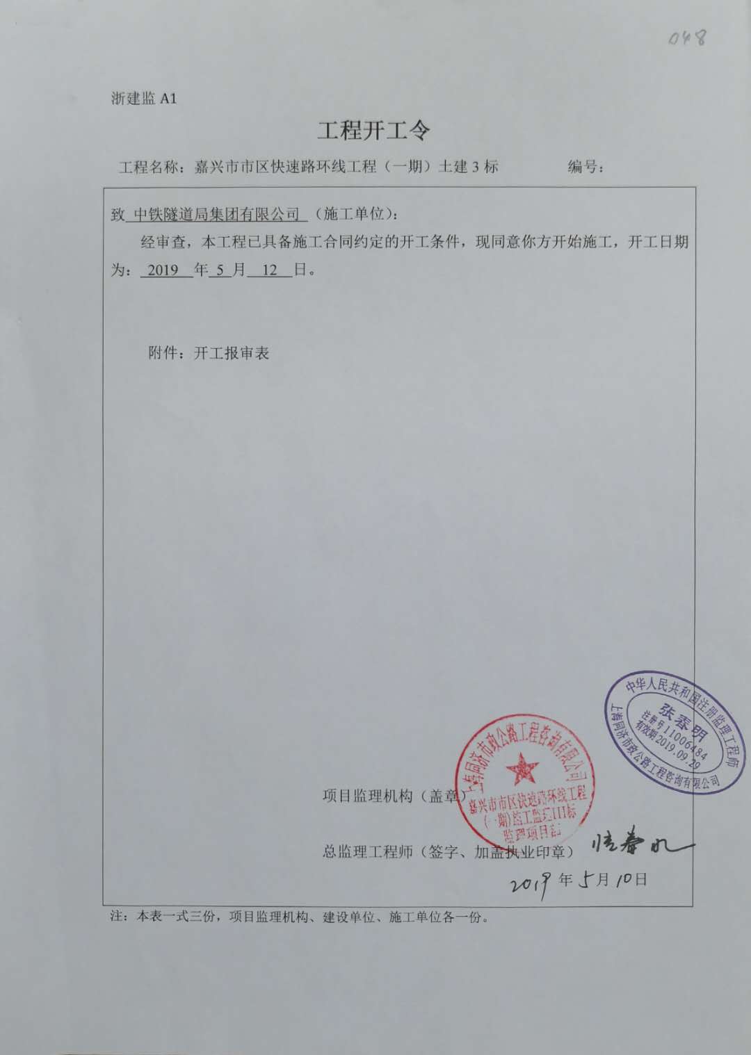 嘉興市市區(qū)快速路環(huán)線工程(一期)土建3標開工時間